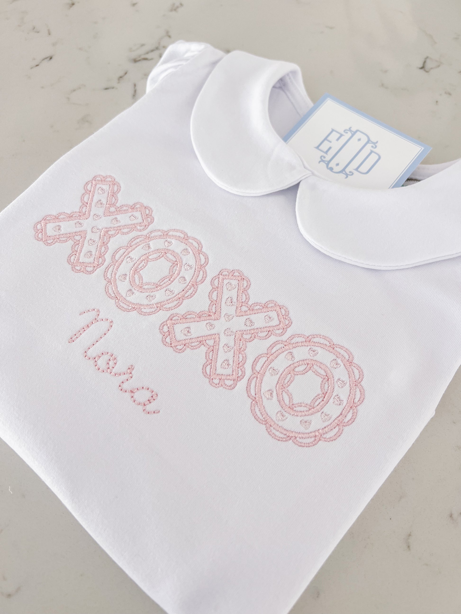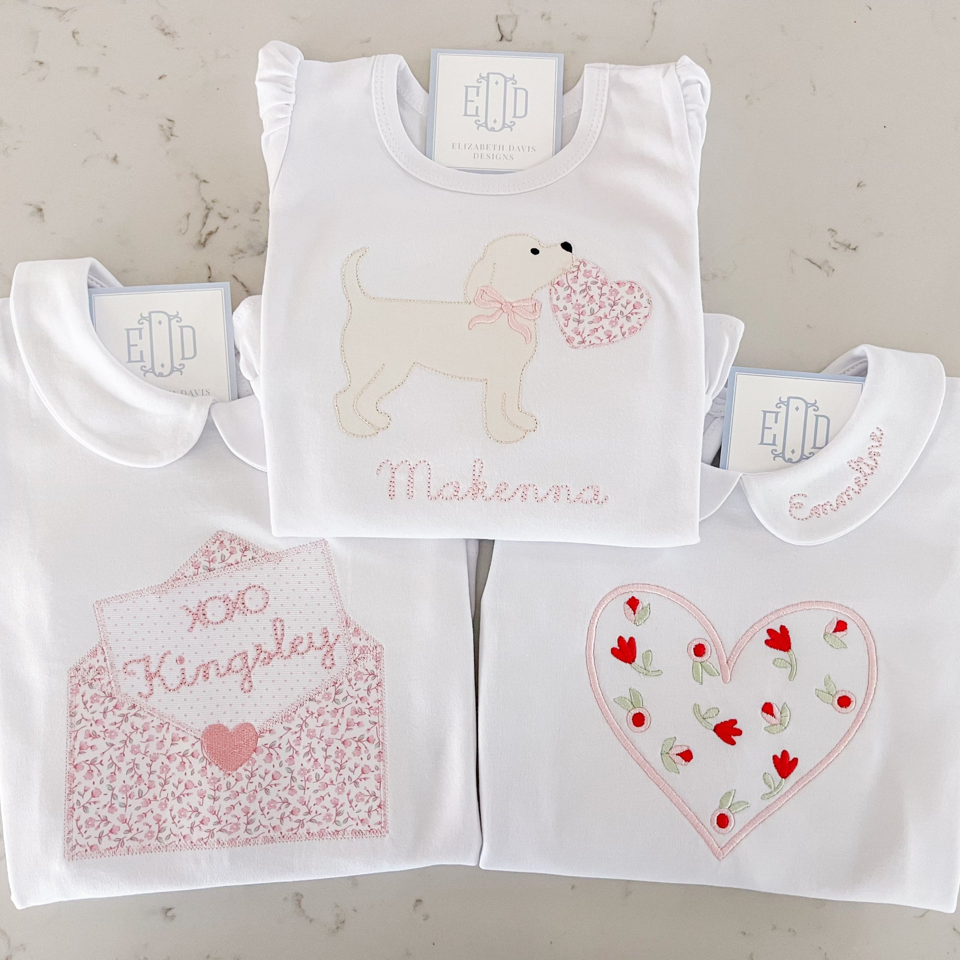 After you pick your collared footie size - select which Valentines design you would like embroidered on the footie. After you have chosen your design, enter your child’s name for personalization.
