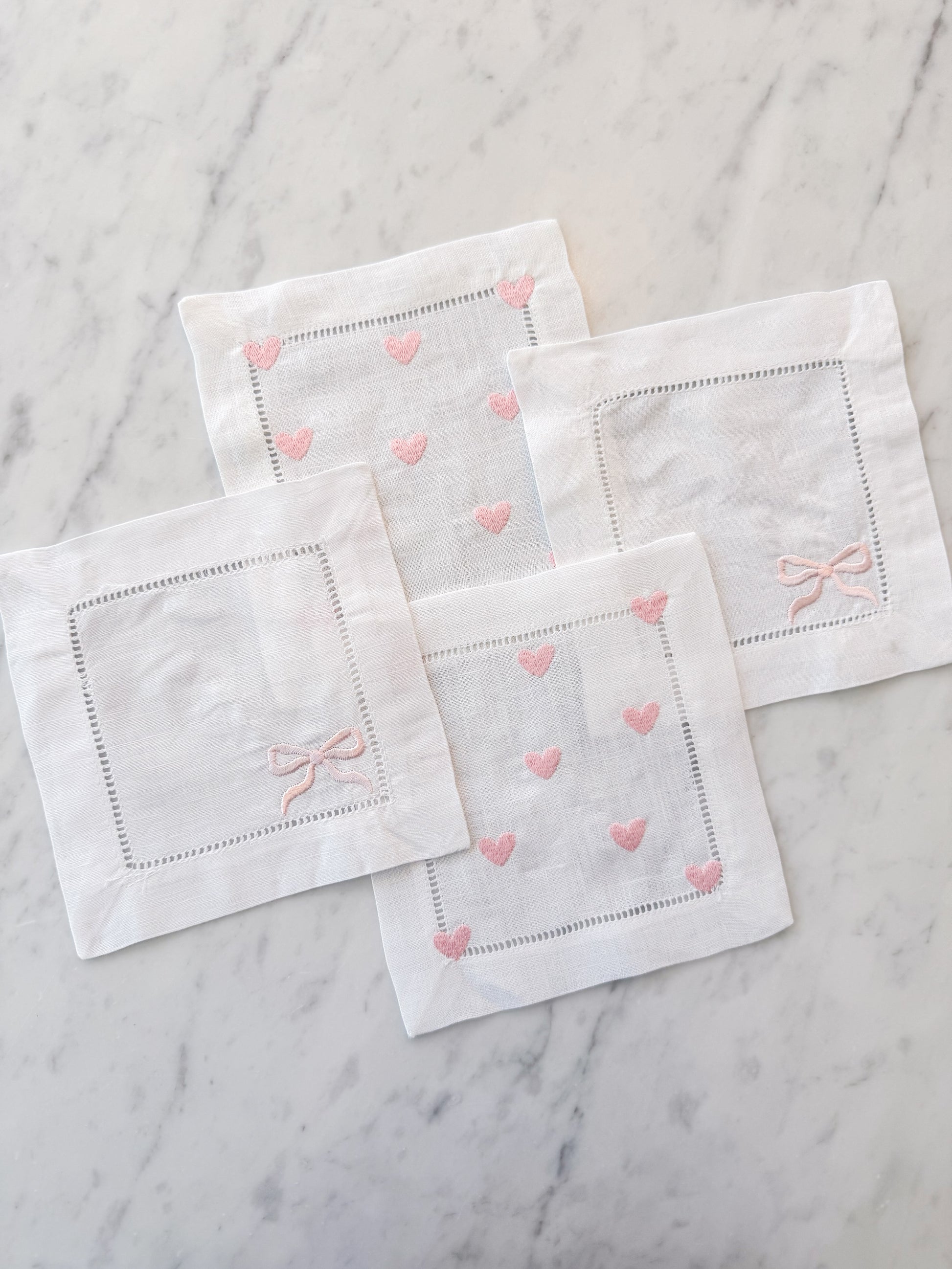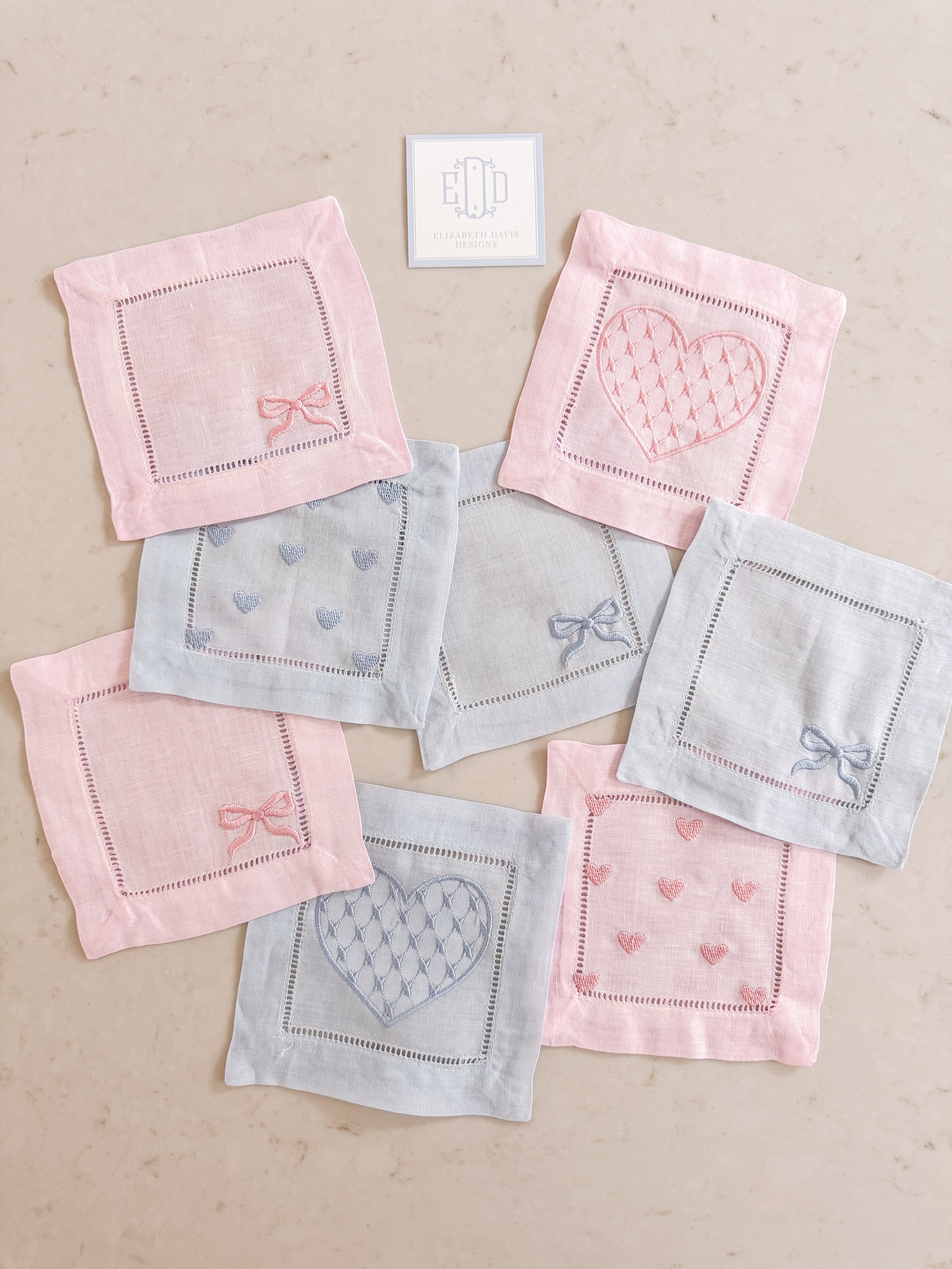 A festive cocktail napkin is one of Elizabeth’s favorite personalized ways to spruce up any cocktail or event! Our Valentine's cocktail napkins come in a set of 4!